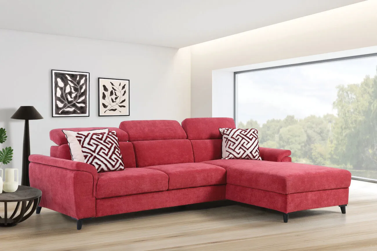 Moderna, otvorena, podignuta od poda, ugaona garnitura Doha, je sinonim za udobnost i ljepotu. Zaobljene stranice i podesivi nasloni za glavu učiniće da uživate u opuštenim porodičnim druženjima. Posjeduje mehanizam za razvlačenje i skladišni prostor.