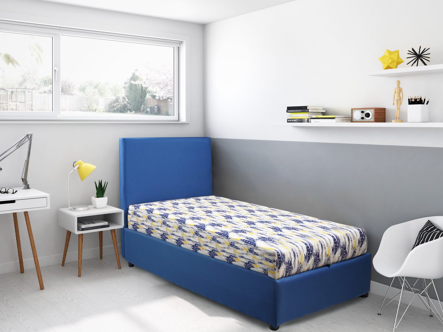Poseduje kutiju za odlaganje posteljine Konstrukcija puno drvo + univer Dostupan u tri dezena i jednobojni po želji