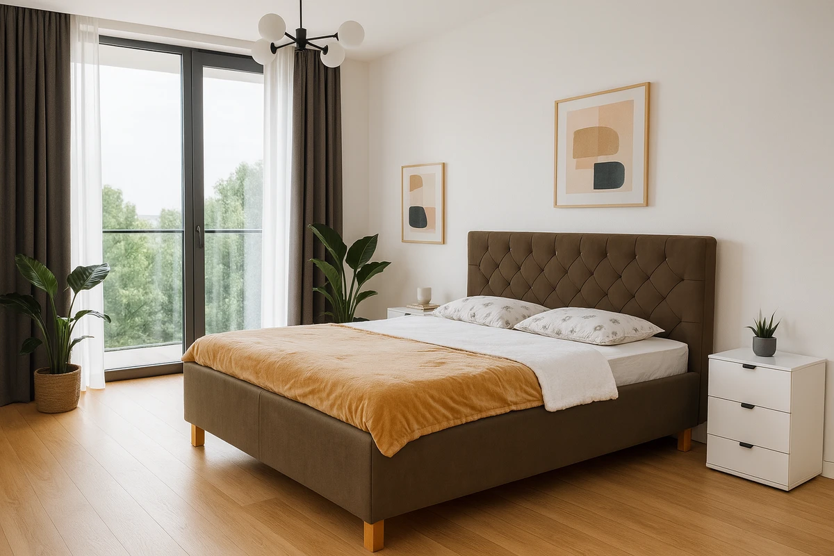 Rustična toplina spojena sa modernim detaljima. Tapacirano uzglavlje s upečatljivim rombastim uzorkom daje krevetu elegantan i prijatan izgled. Stabilne drvene nogice i praktičan mehanizam za podizanje pružaju čvrstinu i dodatni prostor za odlaganje. Idealno za one koji traže funkcionalnost i toplinu u jednom.